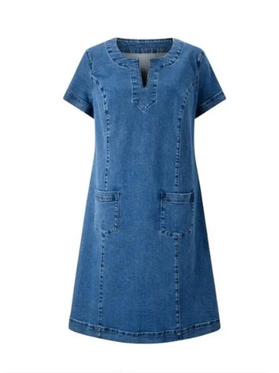 Amanda™ - V-hals Sommerkjole i Myk Denim