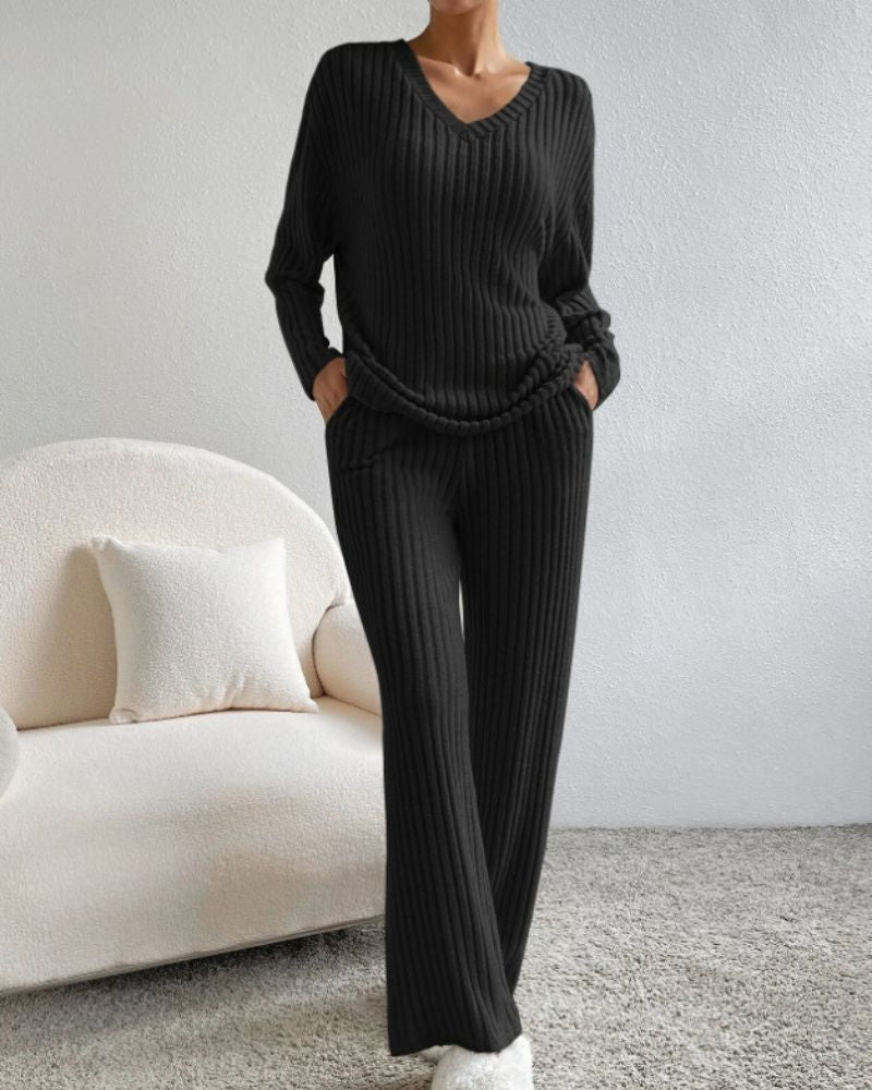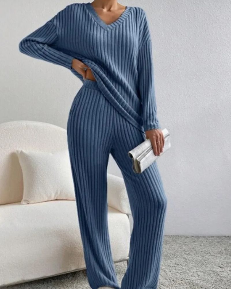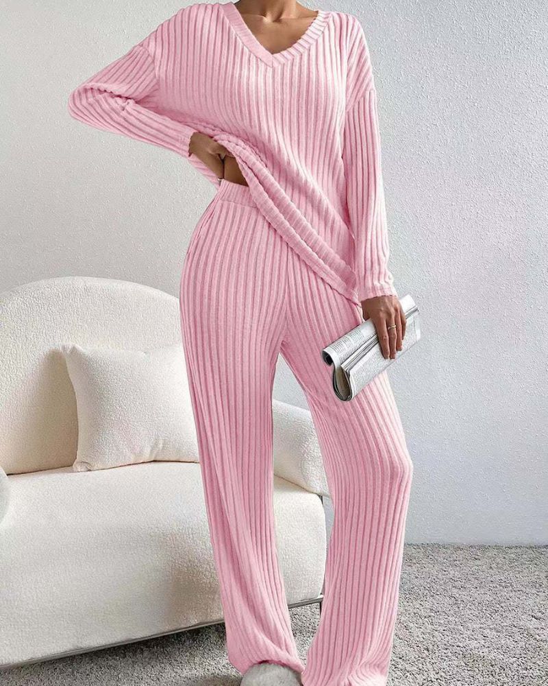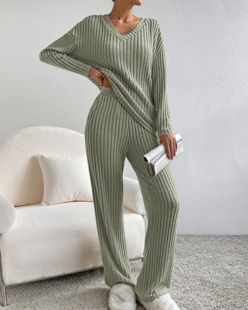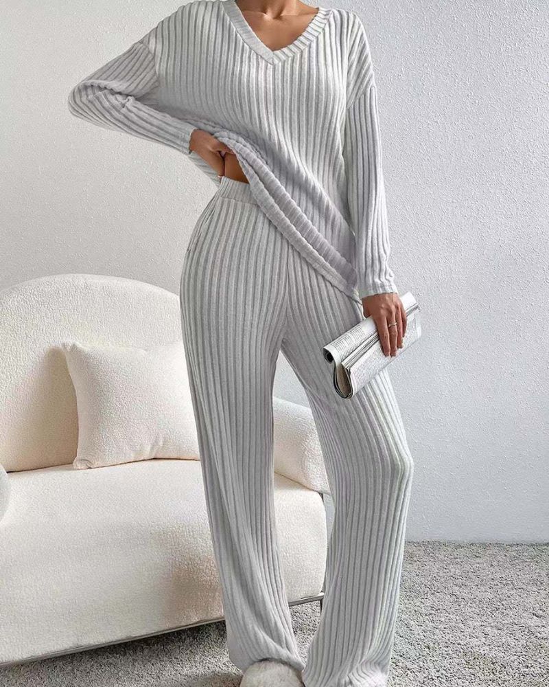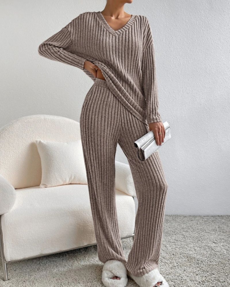 Aurora™ - Elegant V-hals Langermet Topp og Bukse Sett