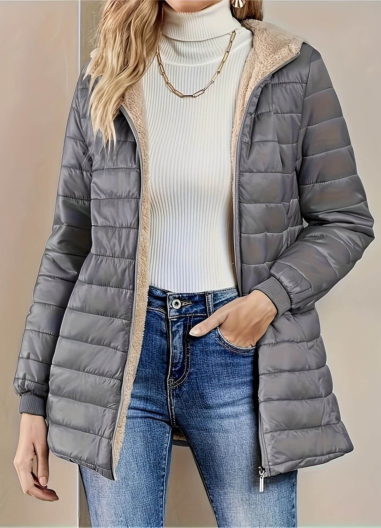 Komfortabel passform hele dagen: Den avslappede fasongen gir bevegelsesfrihet uten å føles tung, og holder deg varm og komfortabel uansett aktivitet.