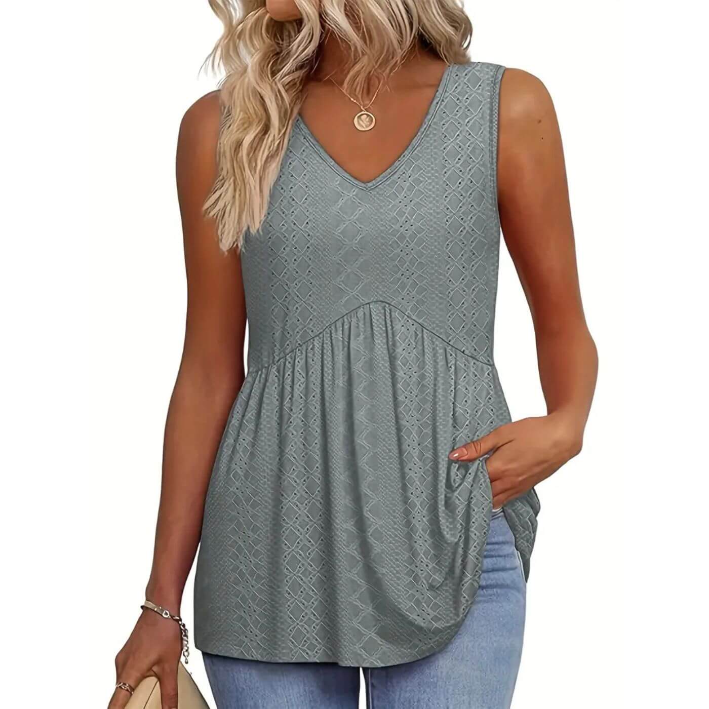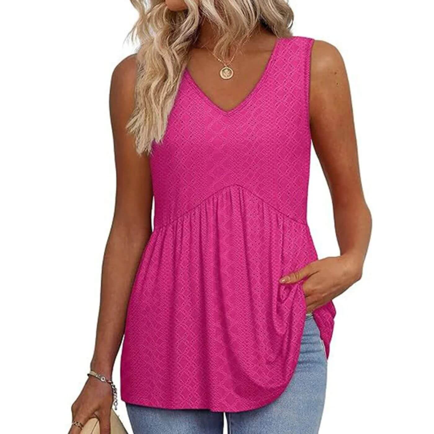 Tidløst snitt som varer: Et enkelt, ermeløst design som alltid ser bra ut og passer til alt.